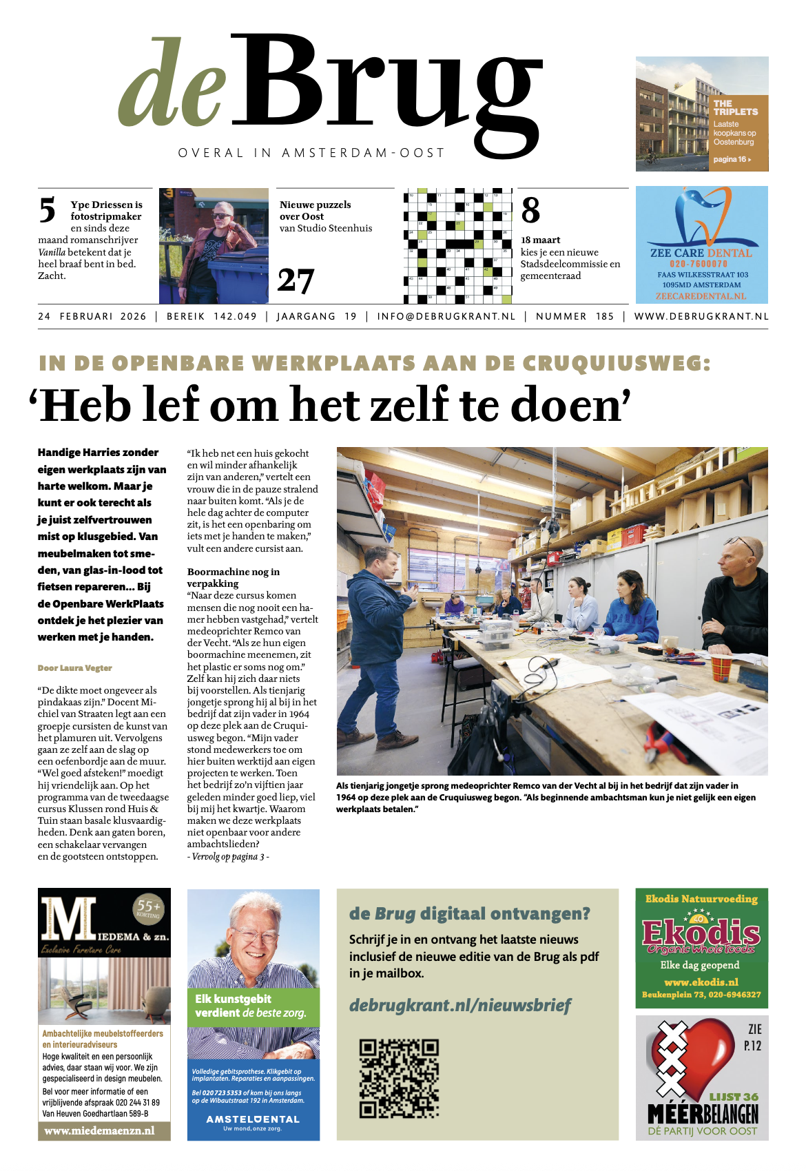 Ja jeetje, wat staat er veel in. Een beetje lef hebben op Cruquiuseiland, deelauto’s op Centrumeiland, een natuurboek, de verhuisde Park Apotheek, voor eeuwig een lage huur, iets over parkeerdruk, evenementen in Oost. En nog veel meer. Hier is de nieuwe de Brug, zoals altijd met plezier gemaakt.