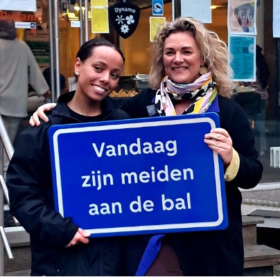 Eén dag in de week hangen er borden bij vijf sportpleinen in Amsterdam met de tekst ‘Vandaag zijn meiden aan de bal’. Simpel. Duidelijk. En nodig, want uit onderzoek blijkt dat meiden veel minder sporten dan jongens — zeker als ze de tienerjaren ingaan.