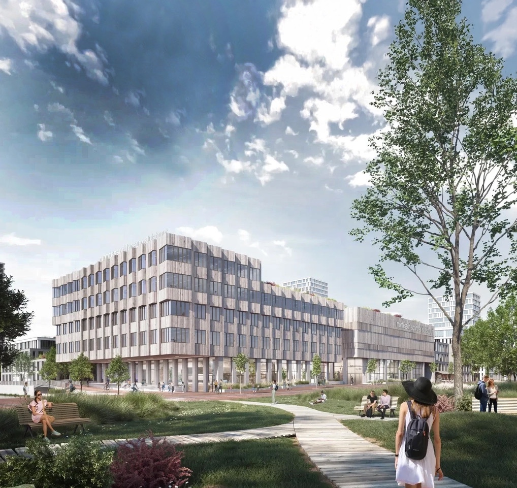 PAX | Verwachte oplevering begin 2027 Plek de Sluisbuurt, Zeeburgereiland Van binnen De Architekten Cie ontwierp het gebouw op basis van het onderwijsconcept: ruime lokalen, waarbinnen vakoverstijgend gewerkt kan worden en flexibele werkpleinen waar leerlingen leren en samenwerken Highlights het kunstcluster met technieklokaal, de geluidsstudio’s, de bètaverdieping en de pleintjes op het dak Bijzonder de veranda om de school heen dient als prettige overgangszone tussen de minisamenleving in het gebouw en de echte wereld daarbuiten Niveaus mavo/havo/vwo