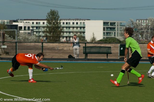 Kijk die heren 1 van de Amsterdamse Hockey Club IJburg. Veertigers vaak. Voormalige super sporters. Drukke baan, druk gezin. En altijd moeten ze het op zondag in de officiële KNHB-competitie opnemen tegen gemiddeld twintig-jarigen zonder serieuze andere verplichtingen (op de studie na dan). Afgelopen zondag 30 september lieten ze die jonge gasten toch mooi alle hoeken van het veld zien. Met 5-3 wonnen ze, van het altijd lastige Scoop Delft. Beslissend was strafcornerspecialist Daniel Dammann. Die is mooi is de tas, de eerste overwinning dit seizoen!